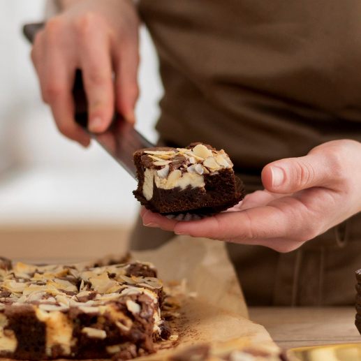 Cada pieza se prepara a mano, sin atajos ni procesos industriales. Utilizamos frutas, chocolates y frutos secos seleccionados, respetando los ritmos naturales de cada ingrediente para ofrecer un producto fresco, único y lleno de carácter.